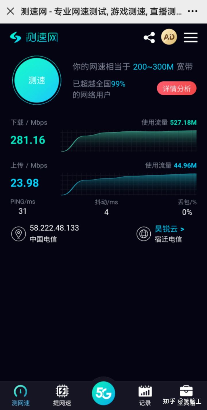 电信卡测速图,4G,5G都放上来了,秒杀市面上大多数流量卡,体验极好