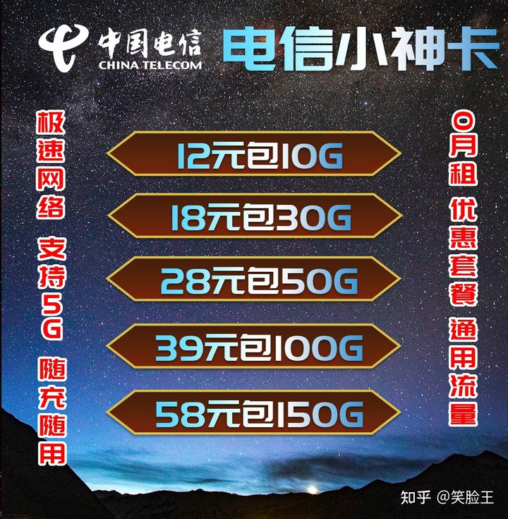 这卡套餐选择比较多,基本适合各种需求的人群,10G到150G,套餐非常有性价比,注意哈都是通用流量,不是定向流量!